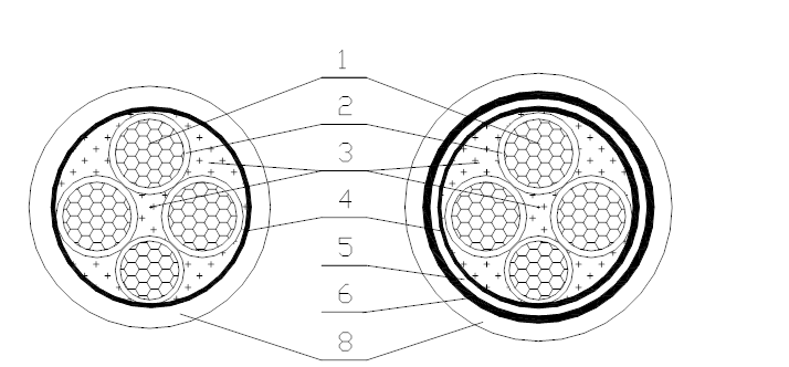1銅導(dǎo)體              2絕緣         3填充        4包帶